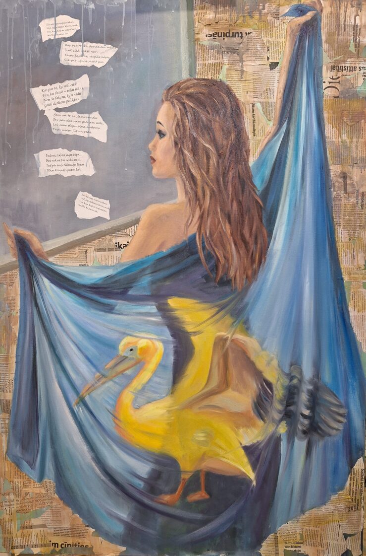 Meitene ar pelikānu (pēc A. Čaka dzejas), a/e, 120x80, 2023 -