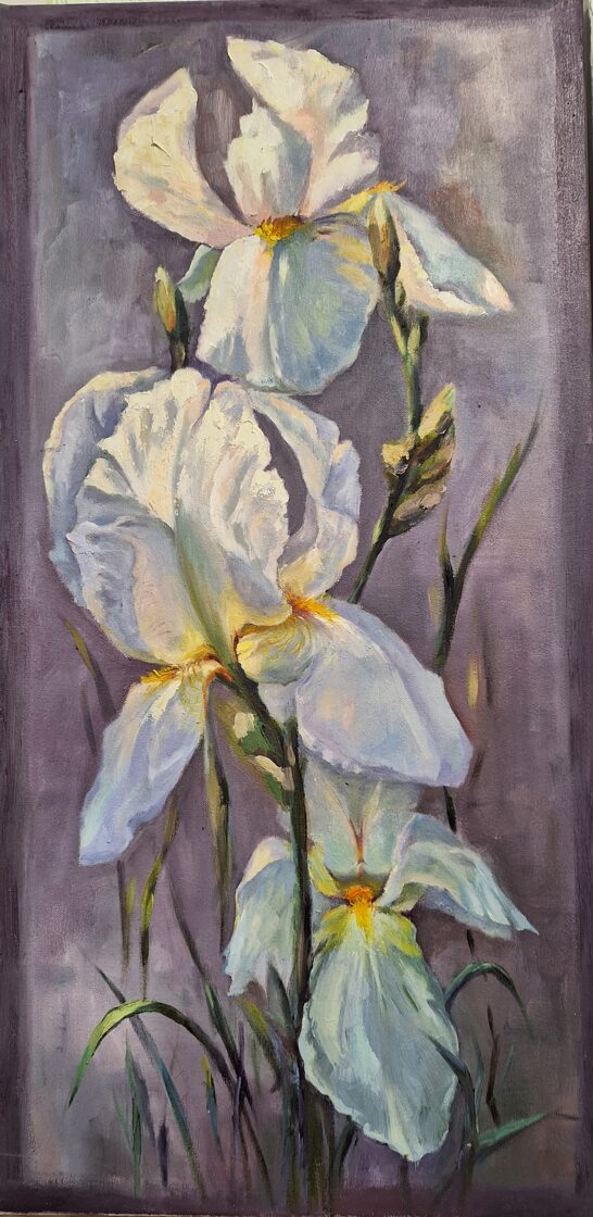 Gaismas rotaļas īrisos, a/e, 80x40, 2023, PRIVĀTKOLEKCIJĀ -