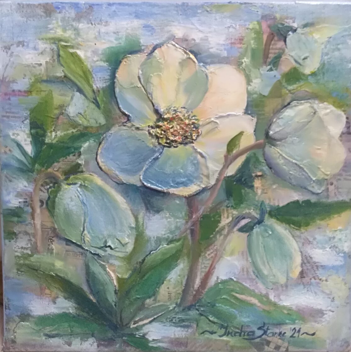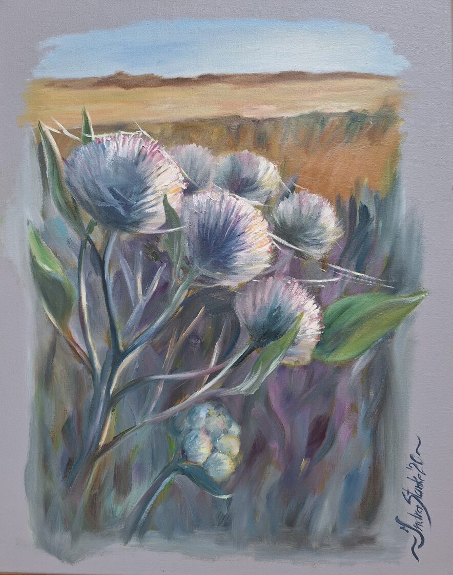 Atkal zied pujenes, a/e., 60x60cm, 2021, PRIVĀTKOLEKCIJĀ -